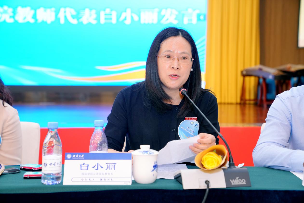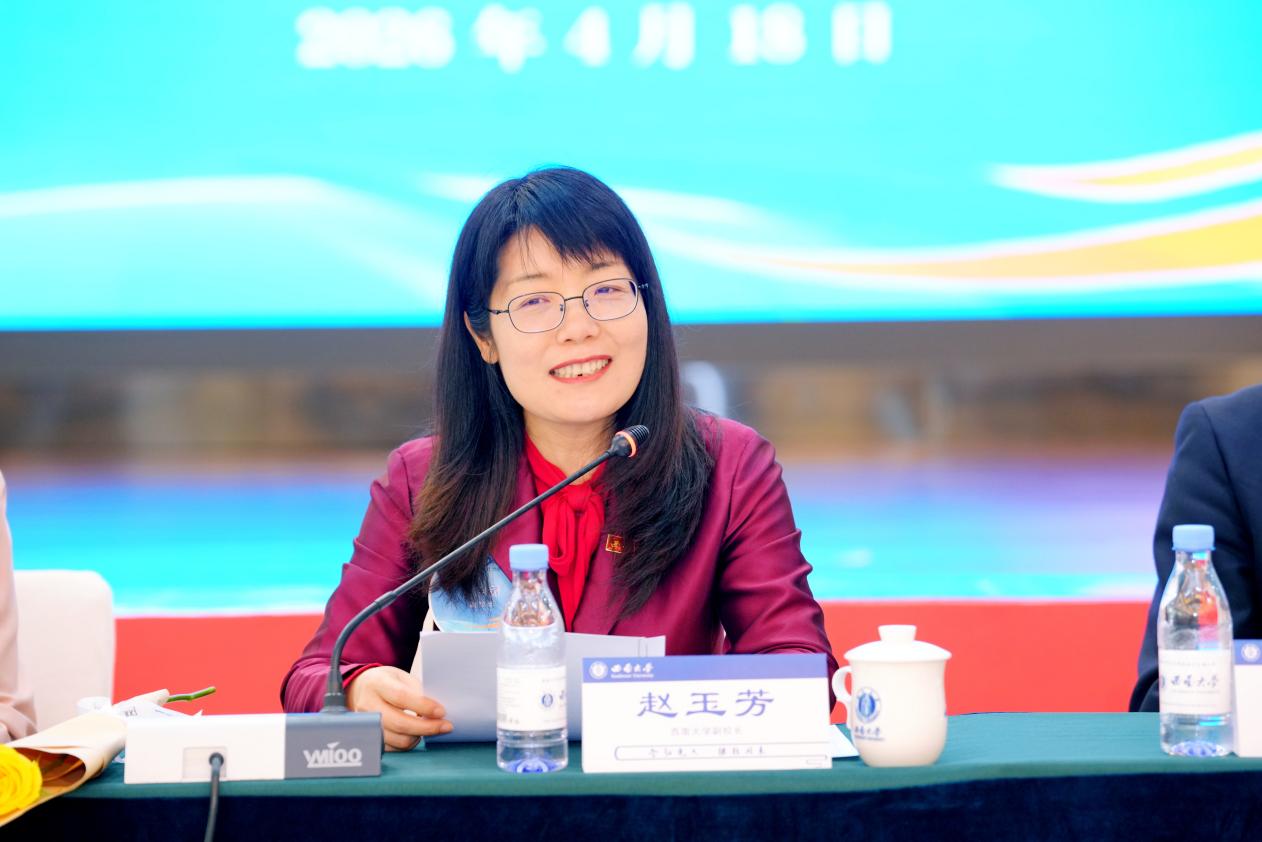 赵玉芳副校长代表学校欢迎国际学生、中国学生校友返回母校,祝贺校友们在各行各业取得突出成就,并为拓展学校与世界各国的联系和合作发挥作用。她介绍了学校近年来在国际合作交流、国际教育方面的重要进展,并表示学校将以120周年校庆为新的起点,特立西南,含弘光大,为建设世界一流大学不懈奋斗。