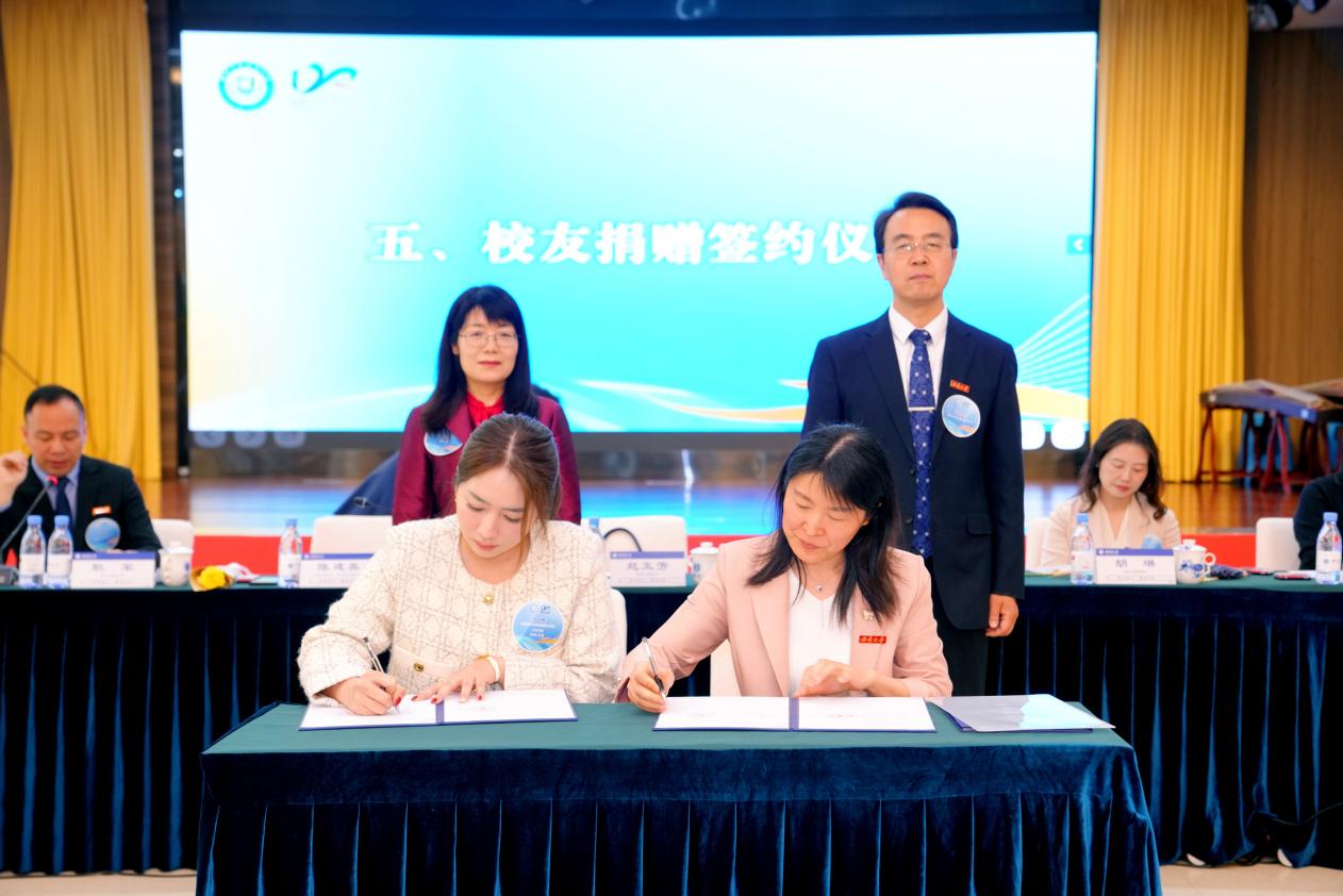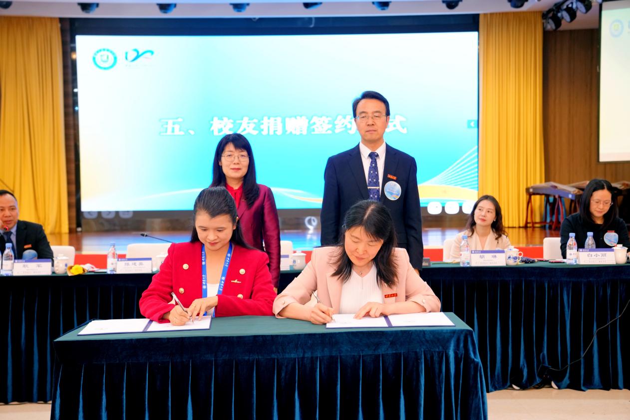 越南云云天平教育集团、泰国AYACHINESE教育集团负责人黎氏云、阿雅与陈建英副秘书长签署协议,向学校捐款成立国际学生奖学金,鼓励更多优秀学生来校留学。