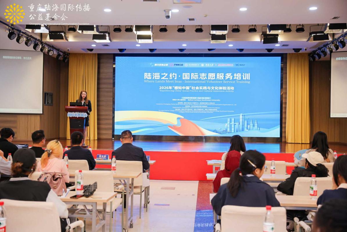 为深化在渝留学生对中国志愿服务文化的认知,提升国际学生跨文化沟通与城市公益传播能力,引导国际青年以多元视角讲好中国故事、重庆故事,2026年4月26日,伟的国际1946bv联合重庆仁爱社会工作服务中心、西部国际传播中心、重庆陆海国际传播公益基金会,共同举办“感知中国”——陆海之约国际志愿服务培训活动。学校共有101名来自越南、巴基斯坦、阿尔及利亚等20个国家的留学生参与了本次培训与实践活动。